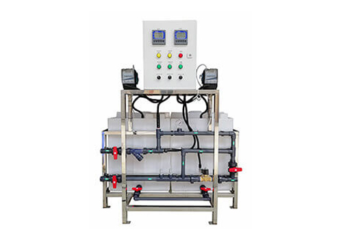 全自動加藥設備用在電力、石油、化工、冶金工業(yè)、環(huán)境工程、水處理、冷凍循環(huán)水設備等領域中,常需要將某種液體連續(xù)自動地注入到另一種液體中成為一種混合液,或者使加入的藥劑與液體中存在的某種組分發(fā)生化學反應,以達到預期的工藝要求。為達到最佳效果,在工況變化的情況下,對所加化學藥劑量自動跟蹤調(diào)節(jié)控制加藥速度,因此在自動加藥裝置中我們采用了先進的自動控制方式來控制加藥量。