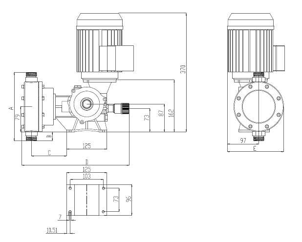 電機驅(qū)動主軸連接的蝸輪蝸桿減速箱形成減速機械結(jié)構(gòu),軸承在偏心軸上的偏心部分,偏心軸在減速箱輸出軸的帶動下旋轉(zhuǎn),軸承在偏心軸的偏心圓上做偏心運動,所產(chǎn)生的偏心距轉(zhuǎn)換成推桿的直線運動,在彈簧回復力的配合下推桿帶動膜片做直線往復運動,往復循環(huán)一次叫做沖程,往復的距離叫做沖程長度,每分鐘往復的次數(shù)稱為沖程頻率。